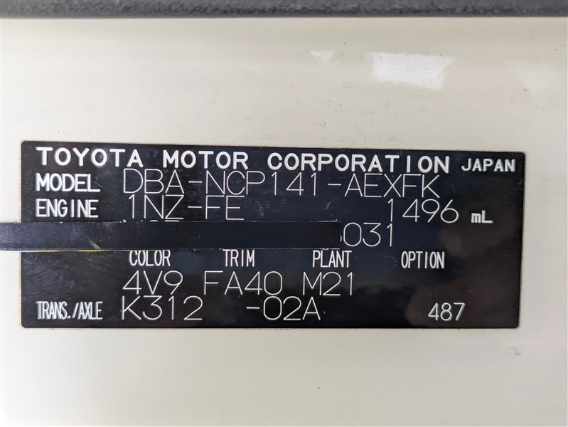 店舗管理ナンバー【072019508137】車台番号(下3桁)【031】