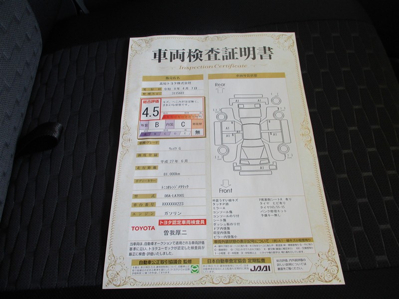 本ページに掲載された評価は、車両検査実施時の車両状態を示したものです。