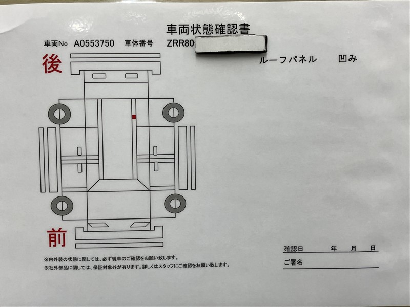 上記と同様の評価点・状態表を「車両検査証明書」として店舗の展示車両に搭載しております。