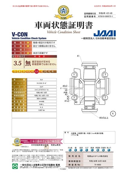 「修復歴あり」の場合、修復部位の詳細につきましては、販売店へお問合せください。