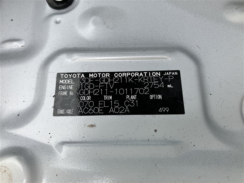 店舗管理ナンバー【165011540350】車台番号(下3桁)【702】