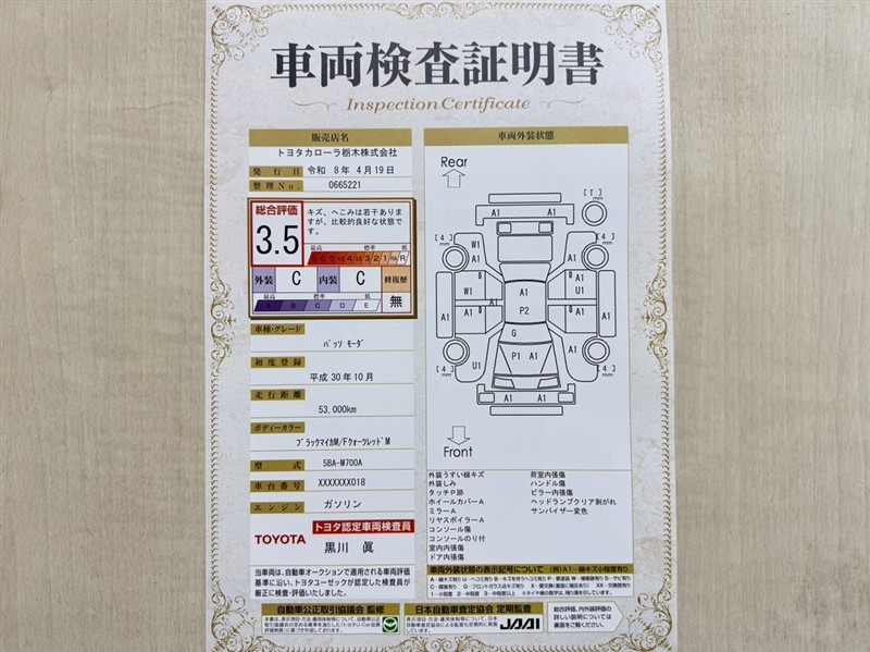 本ページに掲載された評価は、車両検査実施時の車両状態を示したものです。