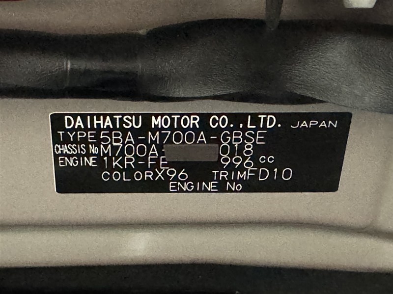 店舗管理ナンバー【332010665221】車台番号(下3桁)【018】