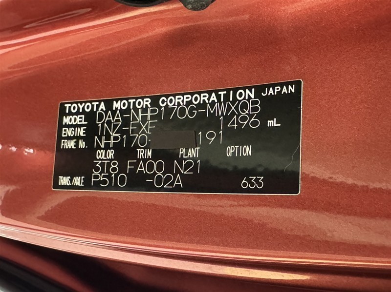 店舗管理ナンバー【332011351638】車台番号(下3桁)【191】