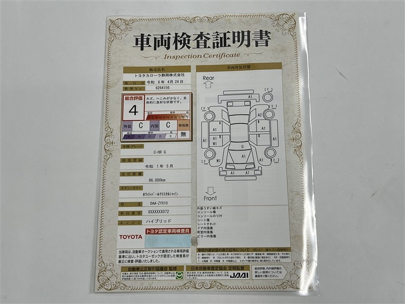 上記と同様の評価点・状態表を「車両検査証明書」として店舗の展示車両に搭載しております。