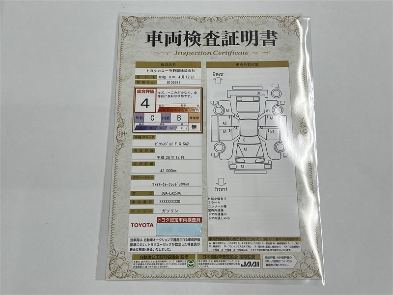 本ページに掲載された評価は、車両検査実施時の車両状態を示したものです。
