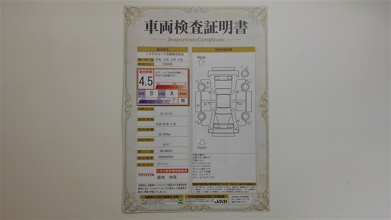 本ページに掲載された評価は、車両検査実施時の車両状態を示したものです。