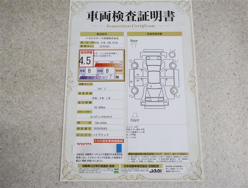 上記と同様の評価点・状態表を「車両検査証明書」として店舗の展示車両に搭載しております。