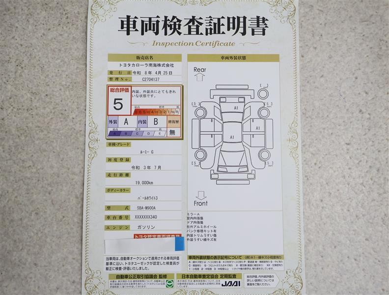 上記と同様の評価点・状態表を「車両検査証明書」として店舗の展示車両に搭載しております。