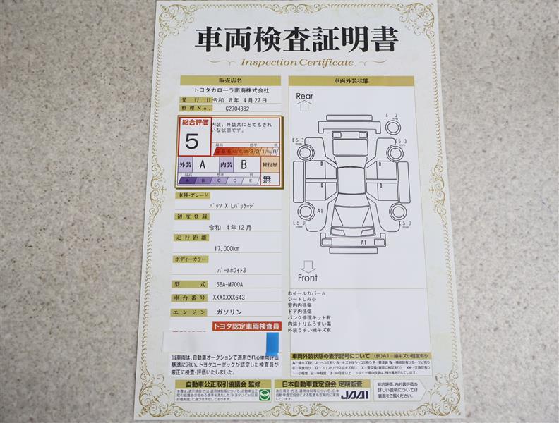 上記と同様の評価点・状態表を「車両検査証明書」として店舗の展示車両に搭載しております。