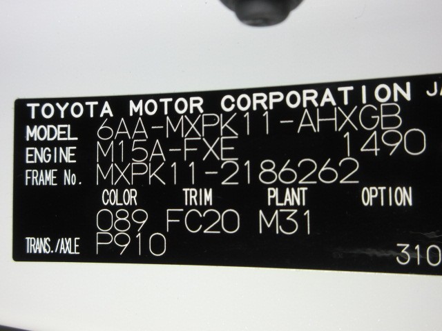 店舗管理ナンバー【356012158424】車台番号(下3桁)【262】
