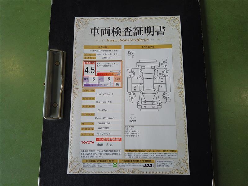 上記と同様の評価点・状態表を「車両検査証明書」として店舗の展示車両に搭載しております。