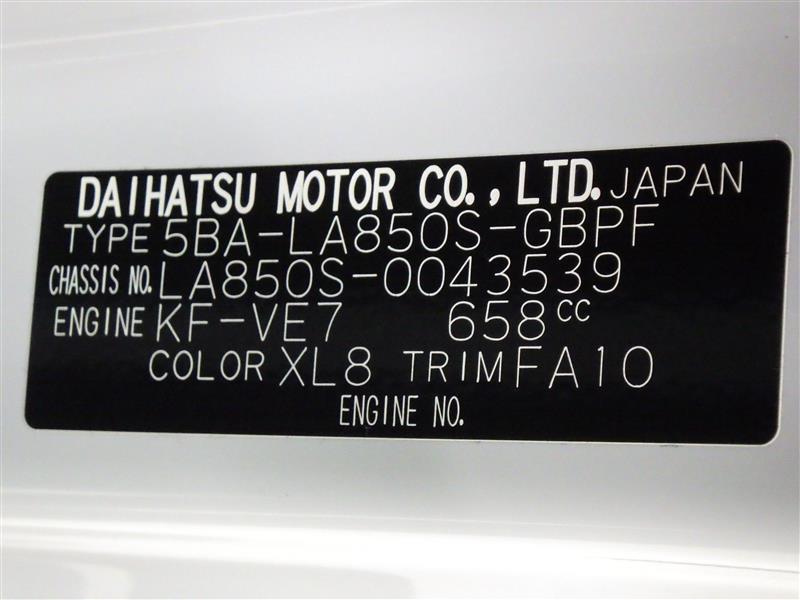 店舗管理ナンバー【385012420021】車台番号(下3桁)【539】