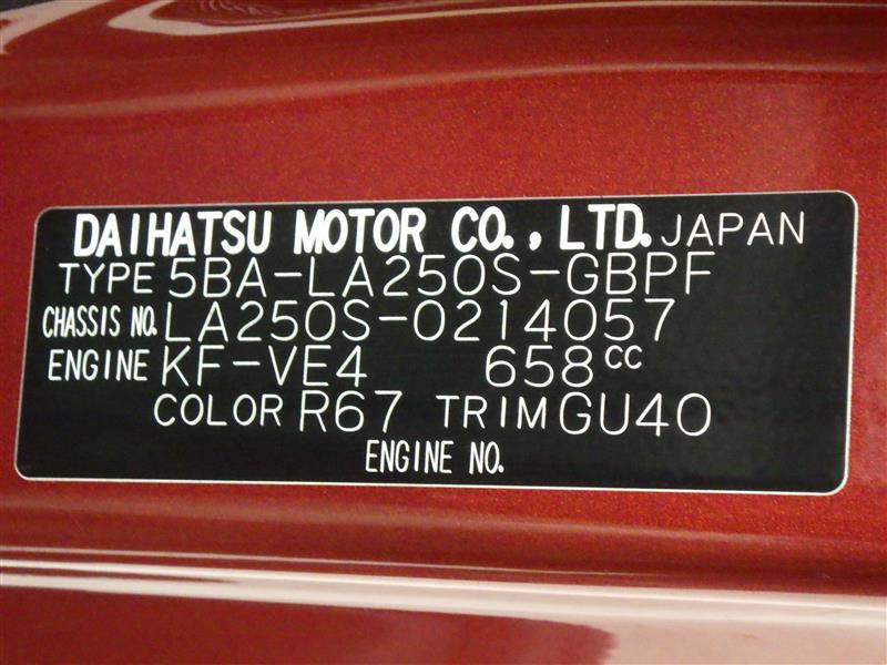 店舗管理ナンバー【385019749371】車台番号(下3桁)【057】