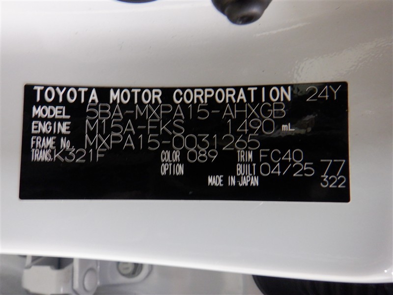 店舗管理ナンバー【421011008186】車台番号(下3桁)【265】