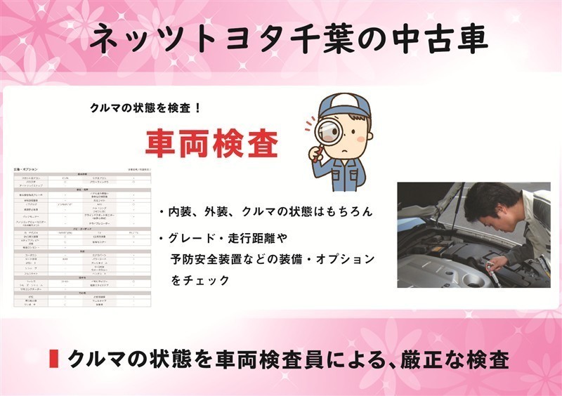 「車検整備付」の場合、車検の有効期限が切れているため、納車時までに、乗用車は24ヵ月、商用車などは12ヵ月定期点検整備を実施し、車検を取得して納車します(費用は支払総額に含む)。