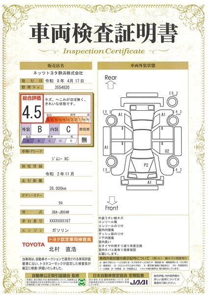 本ページに掲載された評価は、車両検査実施時の車両状態を示したものです。