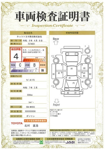 本ページに掲載された評価は、車両検査実施時の車両状態を示したものです。