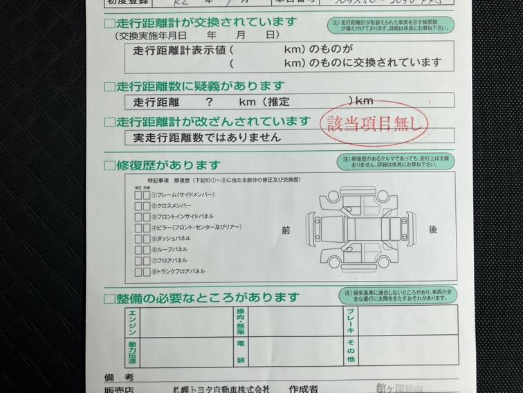 - 「修復歴あり」の場合、修復部位の詳細につきましては、販売店へお問合せください。