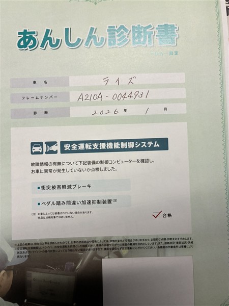 - 「定期点検整備なし(要整備箇所あり)」の場合、整備箇所につきましては、販売店へお問合せください。