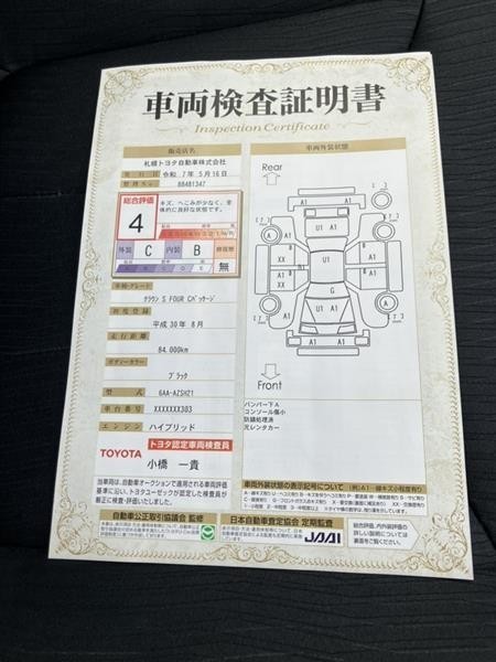 詳細及び現状の車両状態につきましては、店舗スタッフまでお尋ねください。 - 注2)上記と同様の評価点・状態表を「車両検査証明書」として店舗の展示車両に搭載しております。