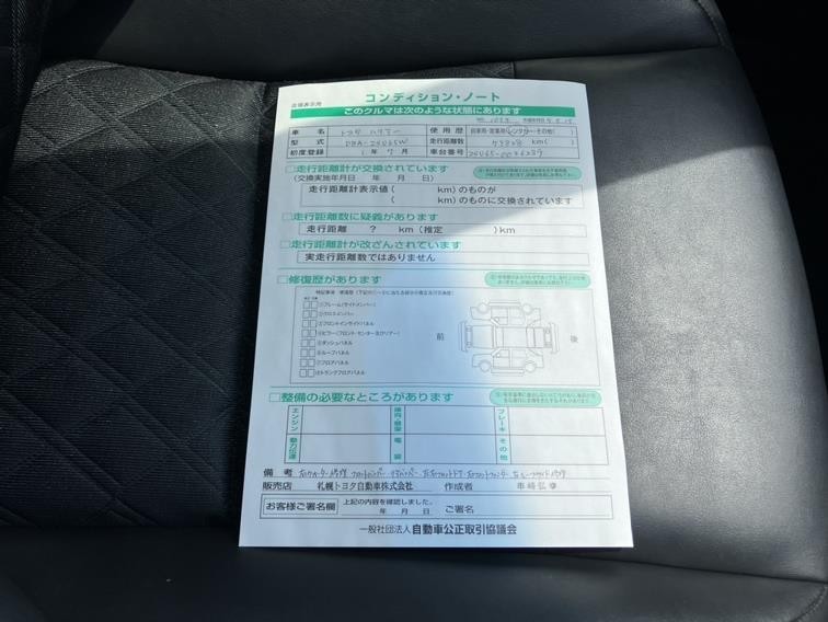 詳細及び現状の車両状態につきましては、店舗スタッフまでお尋ねください。 - 注2)上記と同様の評価点・状態表を「車両検査証明書」として店舗の展示車両に搭載しております。
