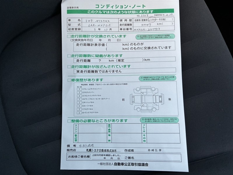 | 走行距離 | 94,000km | 使用歴 | レンタカー |