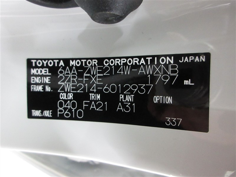 店舗管理ナンバー【022019287084】車台番号(下3桁)【937】