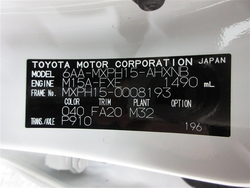 店舗管理ナンバー【022019287378】車台番号(下3桁)【193】