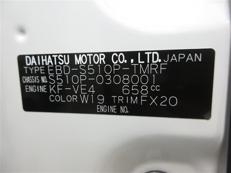 店舗管理ナンバー【022019287441】車台番号(下3桁)【001】
