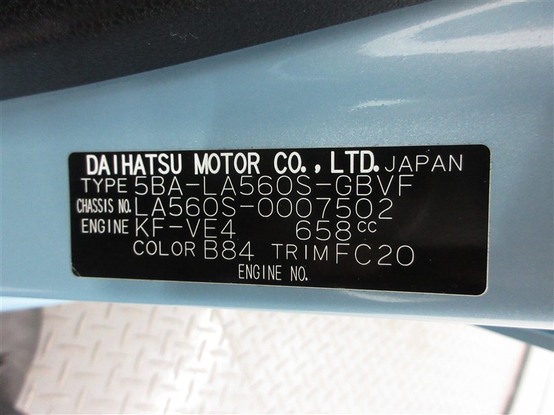 店舗管理ナンバー【022019287572】車台番号(下3桁)【502】