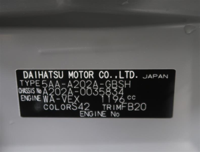 店舗管理ナンバー【023010620121】車台番号(下3桁)【834】