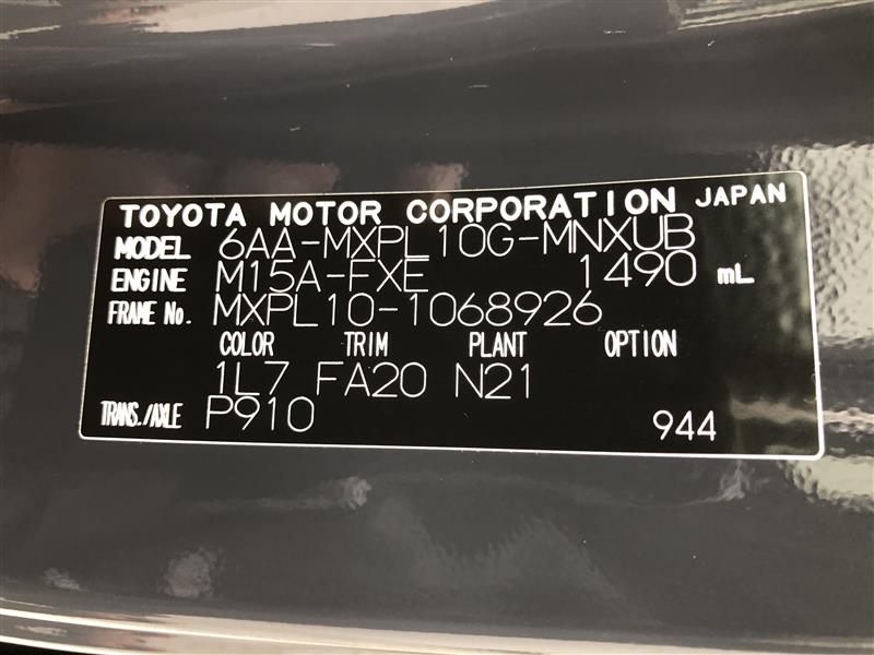 店舗管理ナンバー【02301B207151】車台番号(下3桁)【926】