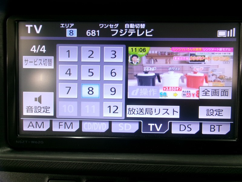 | カーナビ/DA | メモリーナビ(IN) またはナビ付きDA | TV | 地デジ(ワンセグ) |