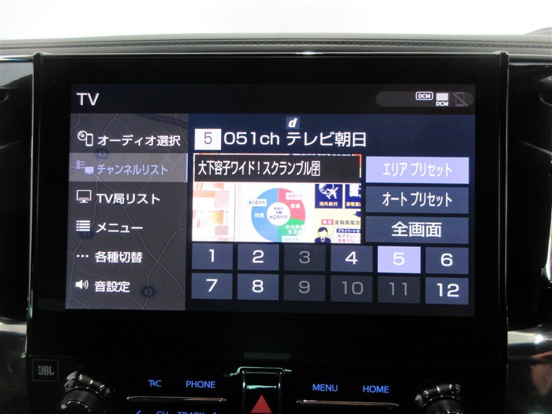 | カーナビ/DA | メモリーナビ(IN) またはナビ付きDA | TV | 地デジ(フルセグ) |