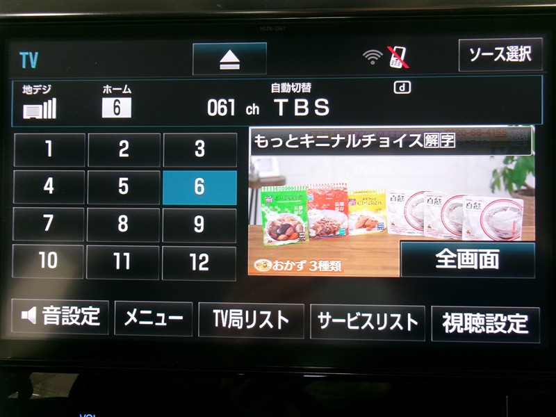 | カーナビ/DA | メモリーナビ(IN) またはナビ付きDA | TV | 地デジ(フルセグ) |