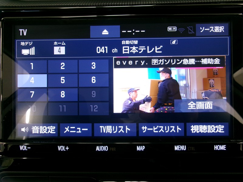 | カーナビ/DA | メモリーナビ(IN) またはナビ付きDA | TV | 地デジ(フルセグ) |