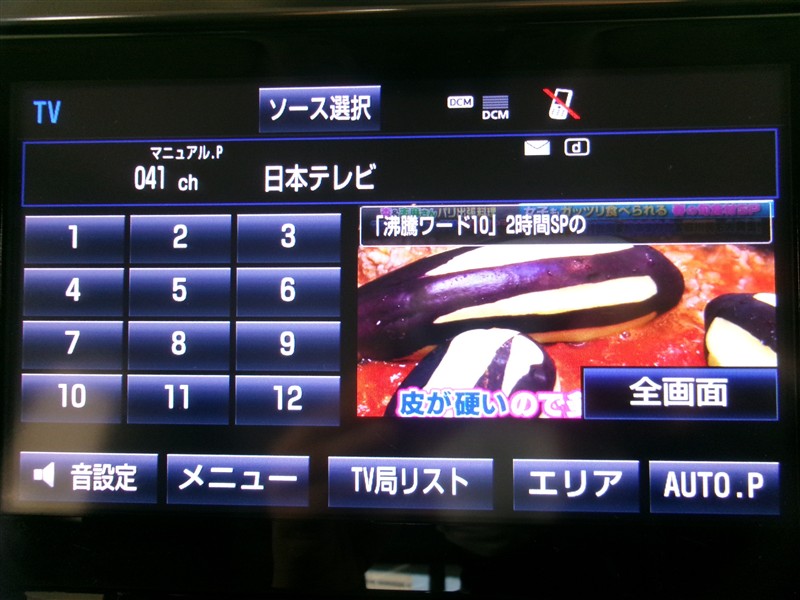| カーナビ/DA | メモリーナビ(IN) またはナビ付きDA | TV | 地デジ(フルセグ) |