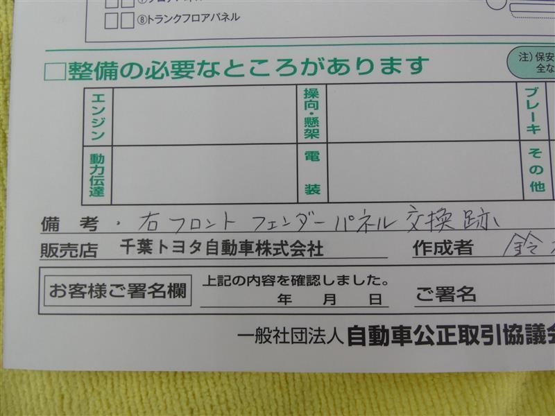 - 「定期点検整備なし(要整備箇所あり)」の場合、整備箇所につきましては、販売店へお問合せください。
