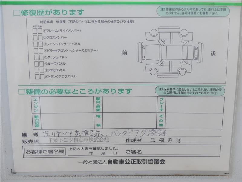 - 「修復歴あり」の場合、修復部位の詳細につきましては、販売店へお問合せください。