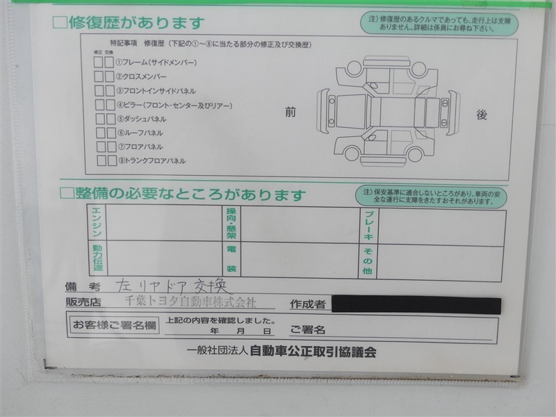 | 走行距離 | 102,000km | 修復歴 | なし |