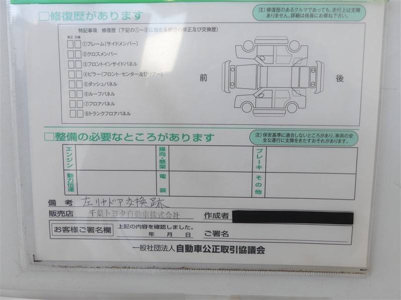- 「修復歴あり」の場合、修復部位の詳細につきましては、販売店へお問合せください。