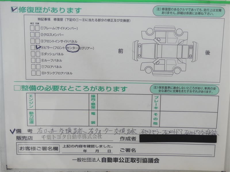- 「修復歴あり」の場合、修復部位の詳細につきましては、販売店へお問合せください。