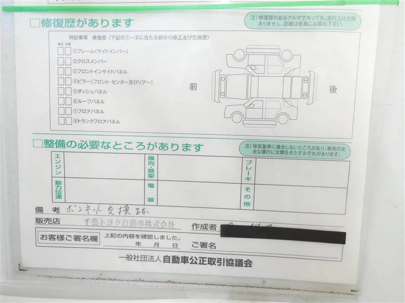 - 「定期点検整備なし(要整備箇所あり)」の場合、整備箇所につきましては、販売店へお問合せください。