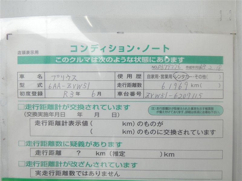詳細及び現状の車両状態につきましては、店舗スタッフまでお尋ねください。 - 注2)上記と同様の評価点・状態表を「車両検査証明書」として店舗の展示車両に搭載しております。