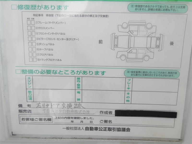 - 「修復歴あり」の場合、修復部位の詳細につきましては、販売店へお問合せください。