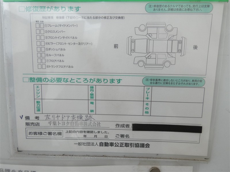 - 「修復歴あり」の場合、修復部位の詳細につきましては、販売店へお問合せください。