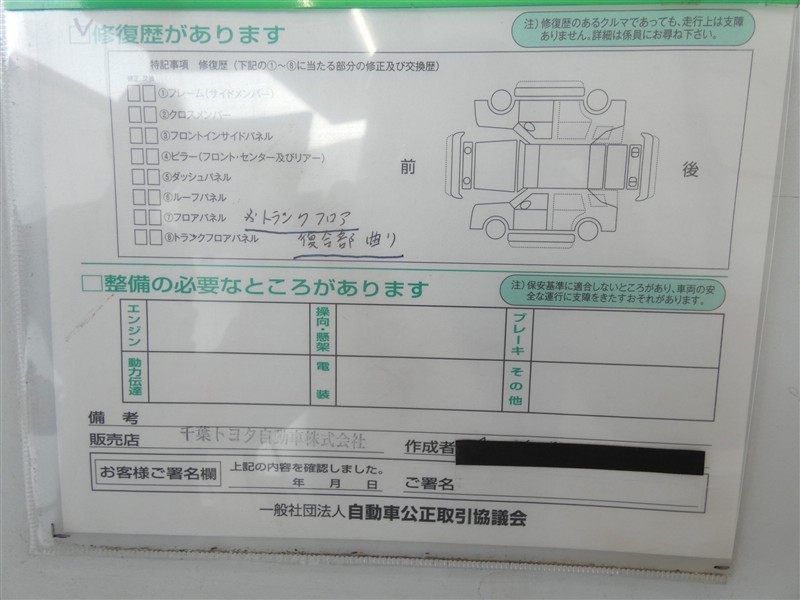 - 「定期点検整備なし(要整備箇所あり)」の場合、整備箇所につきましては、販売店へお問合せください。