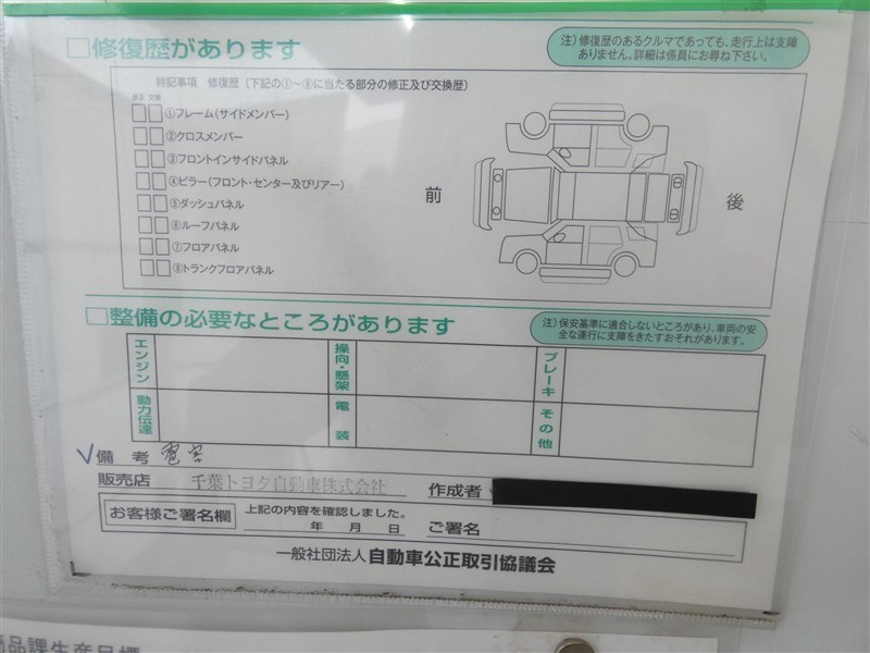 - 「定期点検整備なし(要整備箇所あり)」の場合、整備箇所につきましては、販売店へお問合せください。