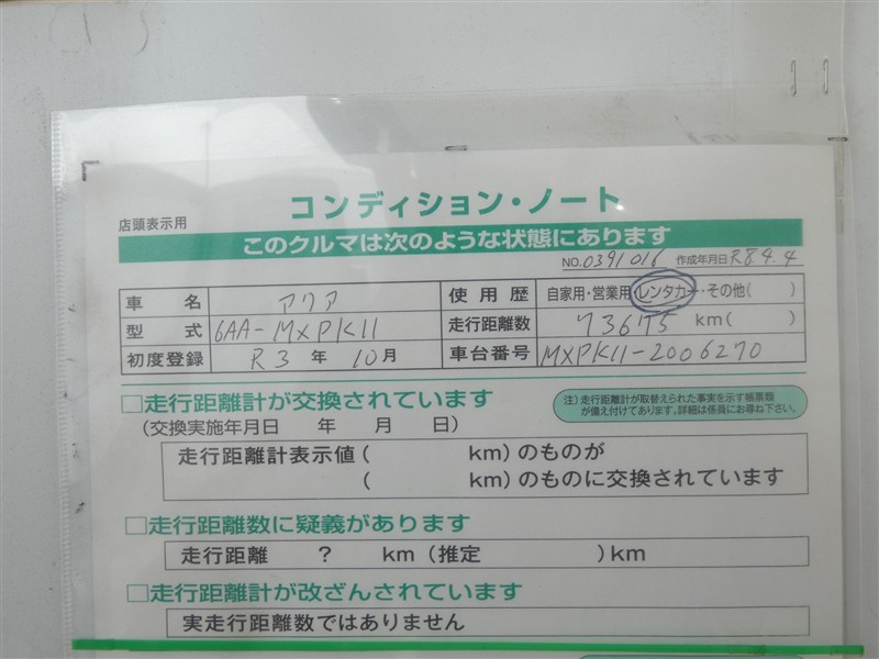 | 走行距離 | 74,000km | 使用歴 | レンタカー |